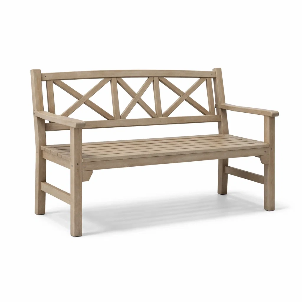 Panchina da giardino in legno di acacia con schienale a x