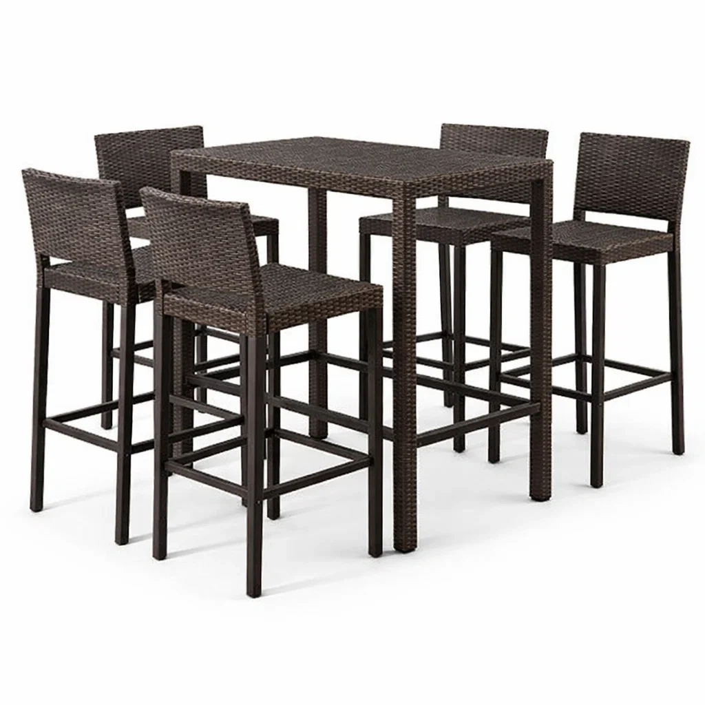 Set bar tavolo alto con sgabelli in rattan sintetico marrone e acciaio