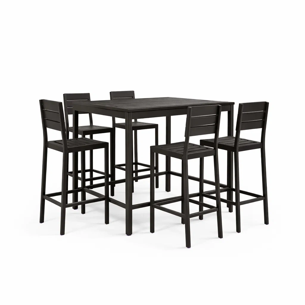 Set bar tavolo alto quadrato e sedie in alluminio nero