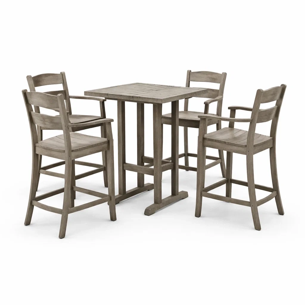 Set bar tavolo e sedie alte in legno grigio per esterno