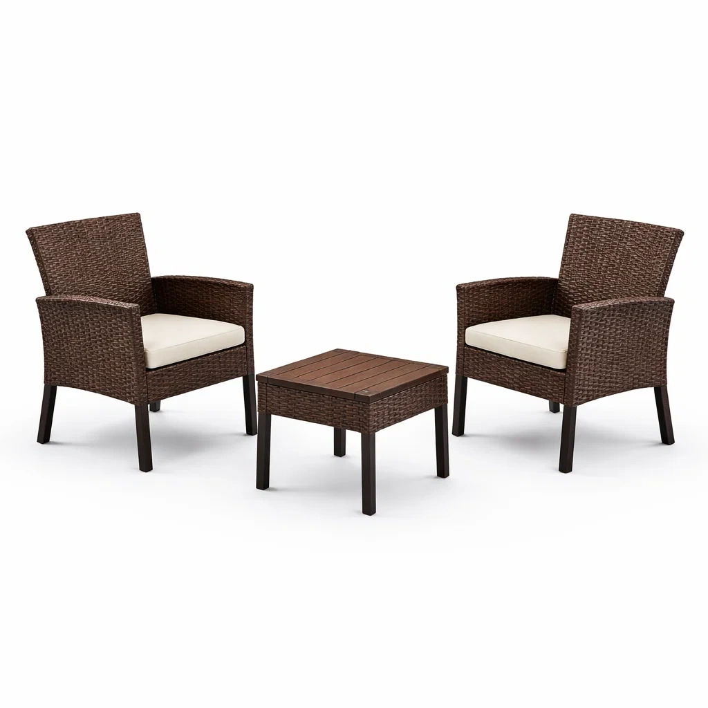 Set da relax piccolo con sedie in rattan con cuscini e tavolino in legno composito