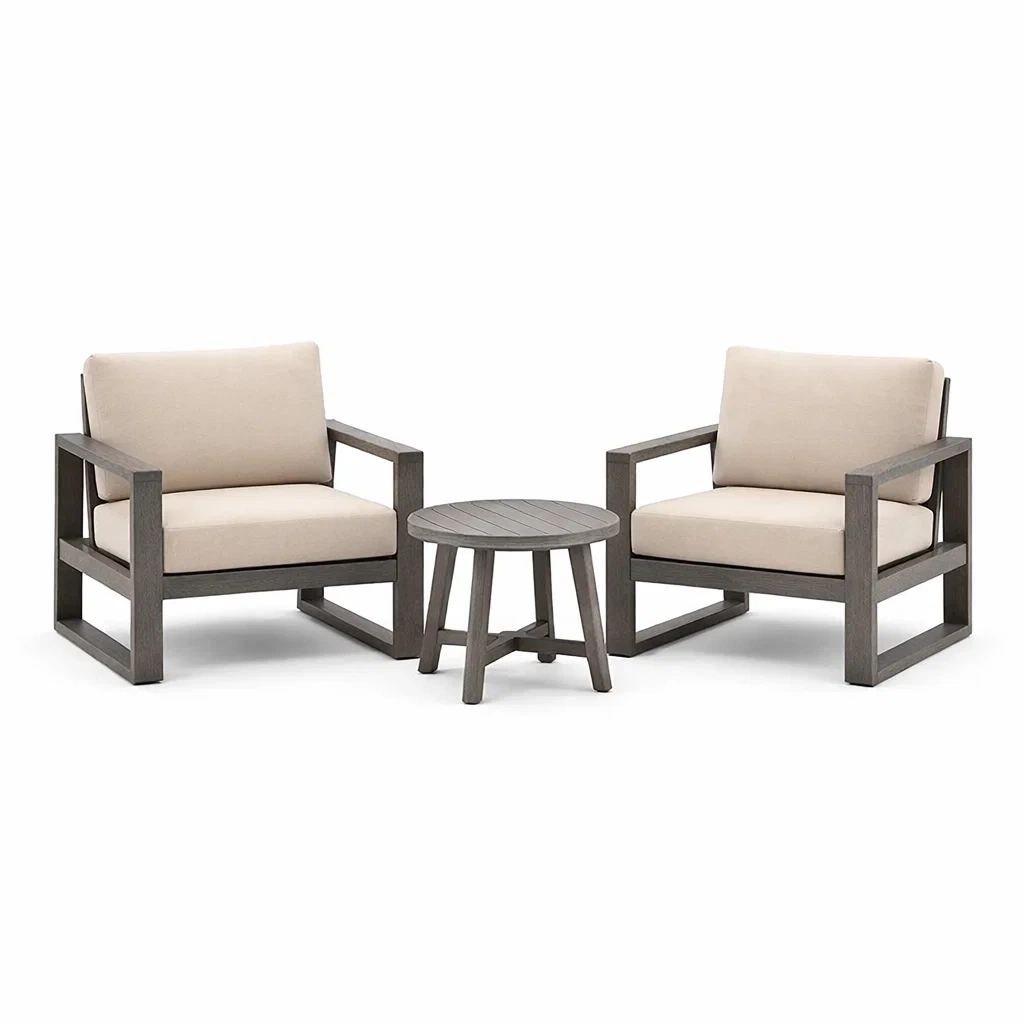 Set da relax piccolo in legno con poltrone e tavolino rotondo