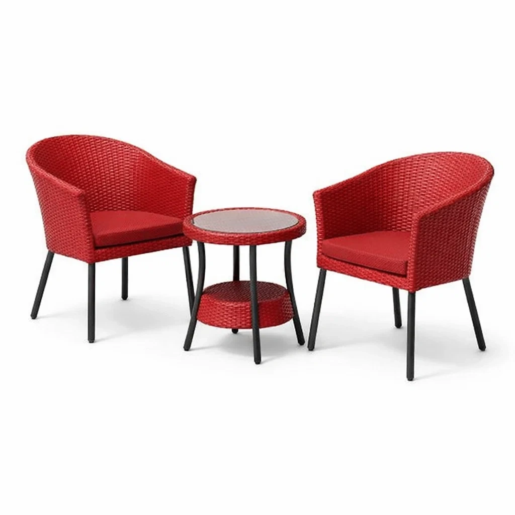 Set da relax piccolo in rattan con tavolo e sedie rosse