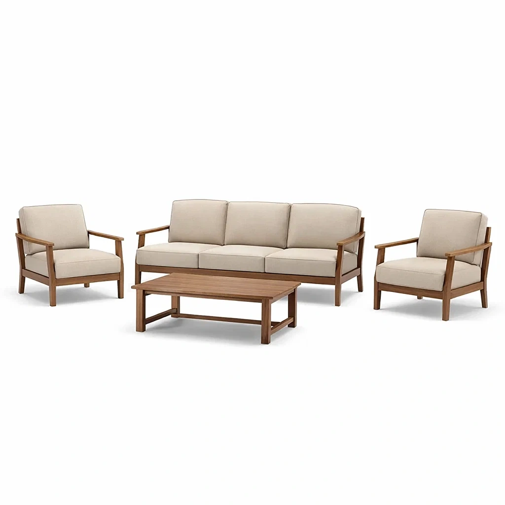 Set di divani in legno con cuscini in poliestere beige