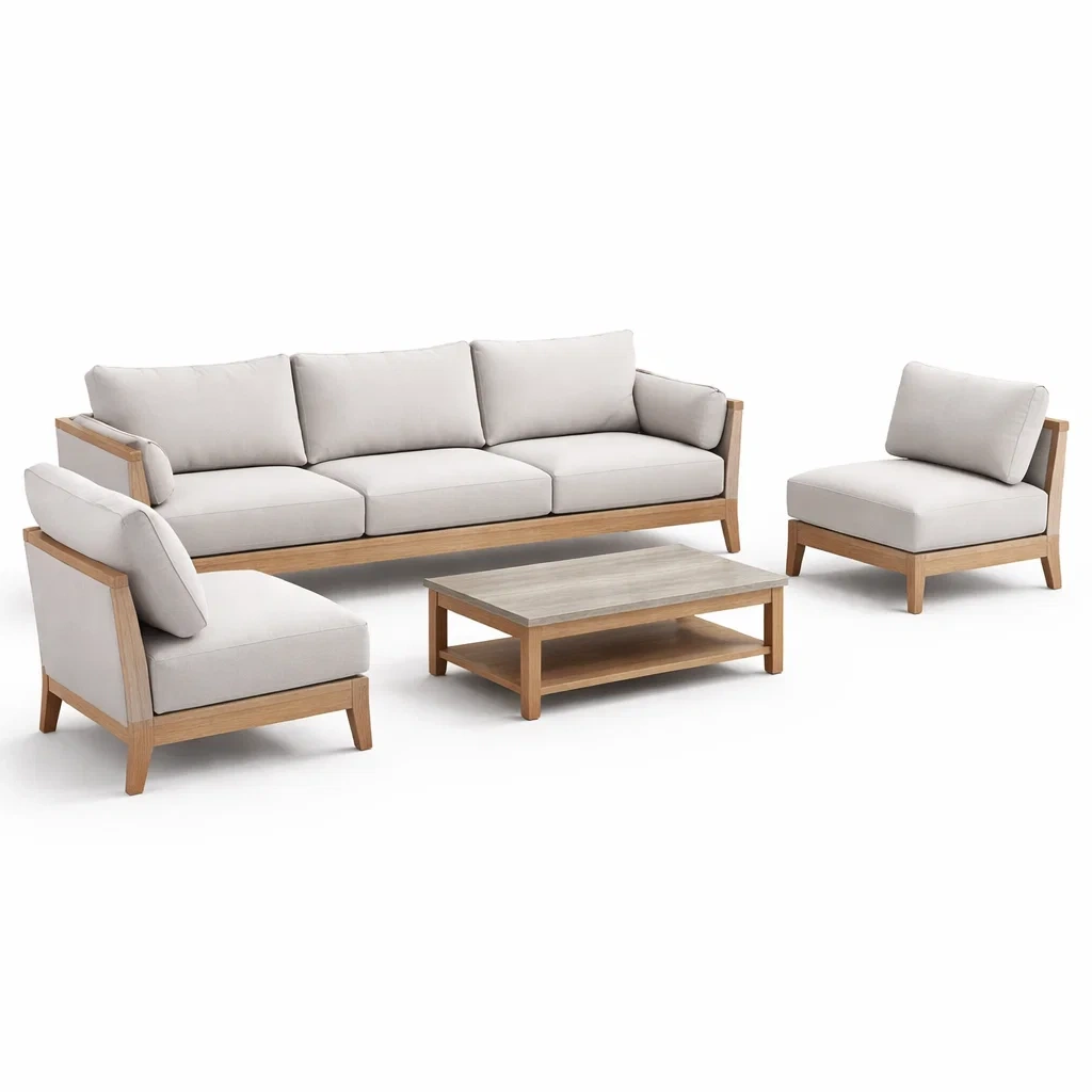 Set di divani in legno di quercia e tessuto grigio chiaro